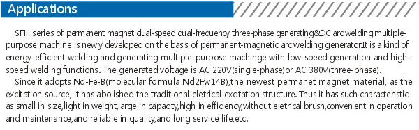 SFH series paermanent three-phase generating & DC arc welding multiple-purpose machine